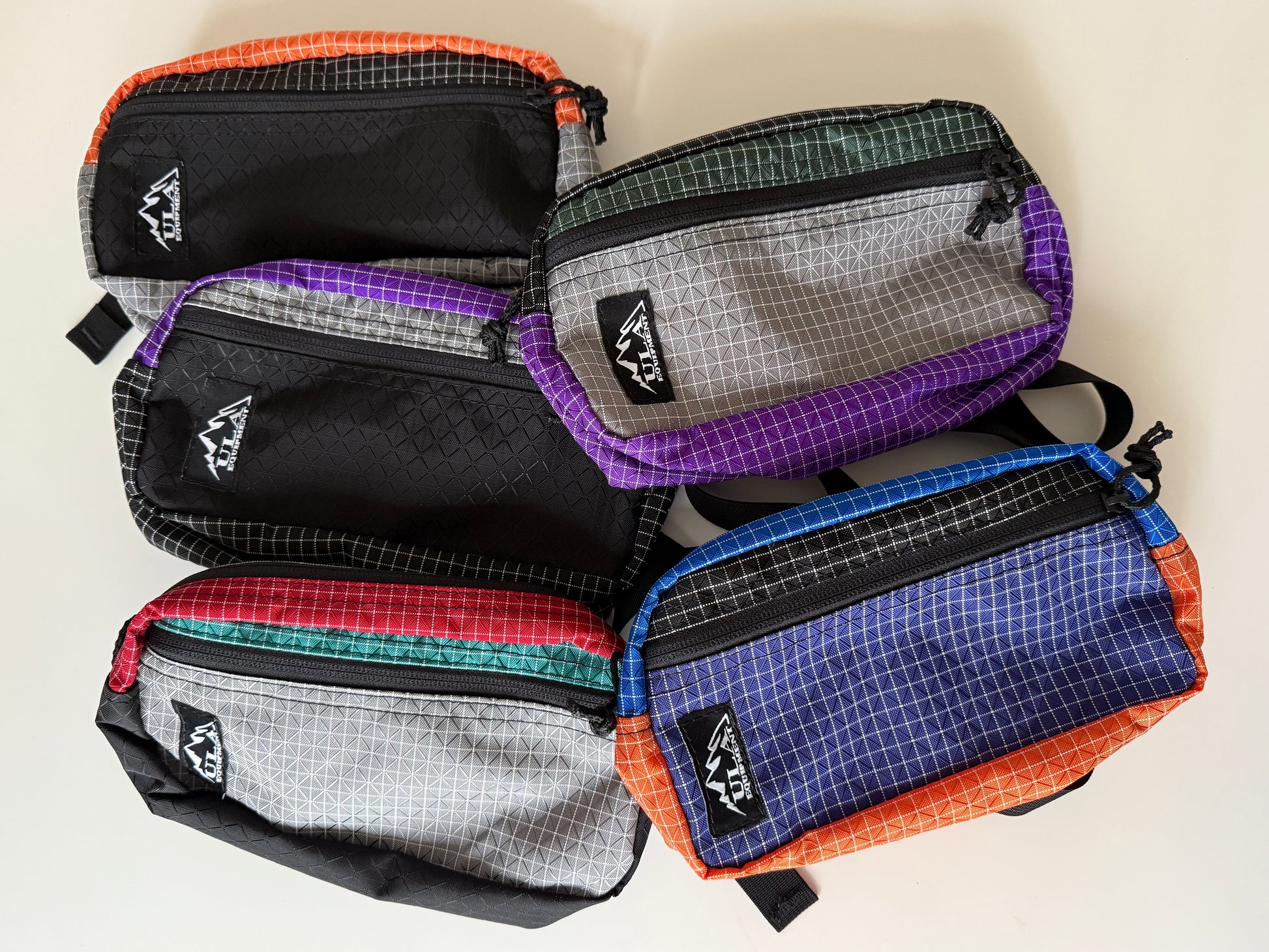 エントロピー・スペアタイヤ ウエストパックは、ECOPAK、X-Pac、ULTRA、Robic、Corduraなど、あらゆる色と生地の組み合わせで製造されます。標準仕様のYKKジッパーを採用。